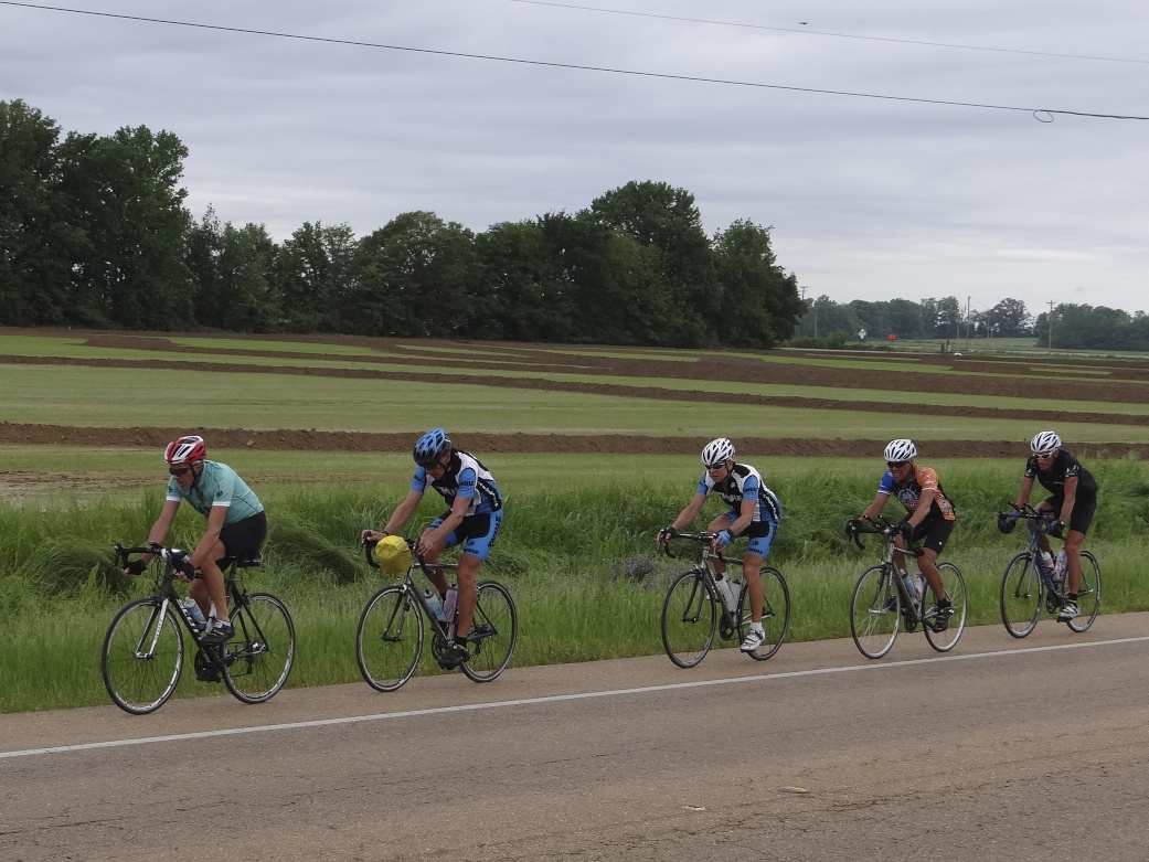 Weird how you can feel totally different physically and mentally on two successive days. Yesterday was like wading through treacle (the Mississippi is a similar colour by the way). Today I felt strong and was flying along thanks to a shared load at the front of the pack with Symon, Nick, Shane and Jerry. Seems extraordinary that draughting (or slipstreaming) can save 15 – 20% effort which over a 100+ mile day is significant. Be interesting to see if tomorrow is a good day or a bad day.