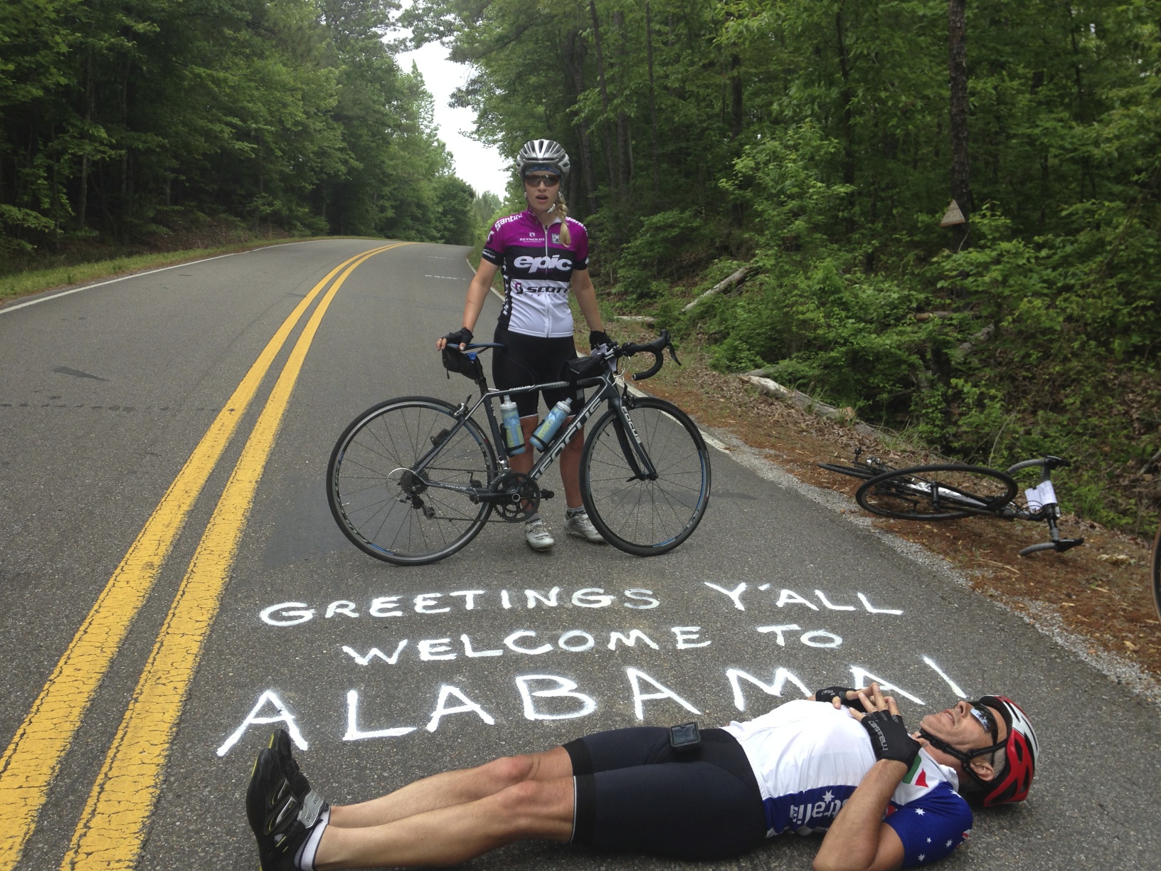 The dogs here in Alabama are like doodlebugs. The ones that bark are the V1s that tormented London earlier in the Second World War. You can hear them coming a long way off and take evasive action (not so much head for the Andersen shelter more pedal like crazy to outrun them). The ones that don’t bark are like the silent V2s that rained down on the capital towards the end of the conflict – altogether more scary. Canine stealth bombers if you will. Pouncing from the undergrowth with barely a snarl until the saliva specked teeth are so close to your calf muscles that you can feel the wet heat. So far none has found its target but at the current rate – 7 or so dogs an hour – it can only be a matter of time before a “direct hit.” The Kiwis have suggested I send Rose up ahead. Not such a bad idea….