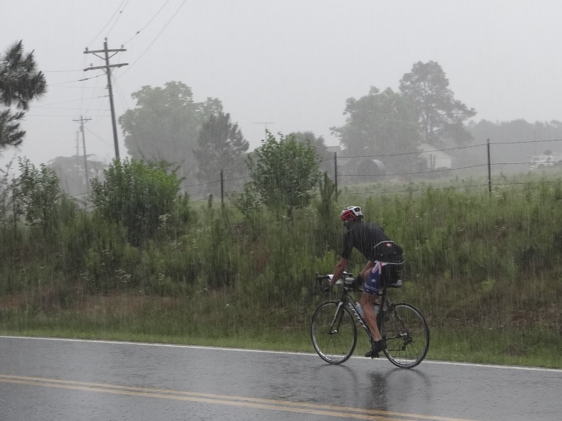 At the end of every day’s riding I take a shower. Get rid of the grit and the grime. Freshen up. Let the jets of water ease tired muscles. Well today I had three showers. It’s not that I’ve developed some cycling-induced obsessive compulsive disorder. It’s just that it rained on us for the first time. The rain showers were nearly as hot as the one in the hotel bathroom. In fact if I’d slipped a bar of soap into my cycling pants I could have saved a whole lot of time later and finished the ride squeaky clean. Or at least squeaky. I enjoyed riding in the rain. It reminded me of home. Reduced the air temperature and increased the speed. The only down side? Prune fingers, prune toes and, though I didn’t look to check, prune cheeks.